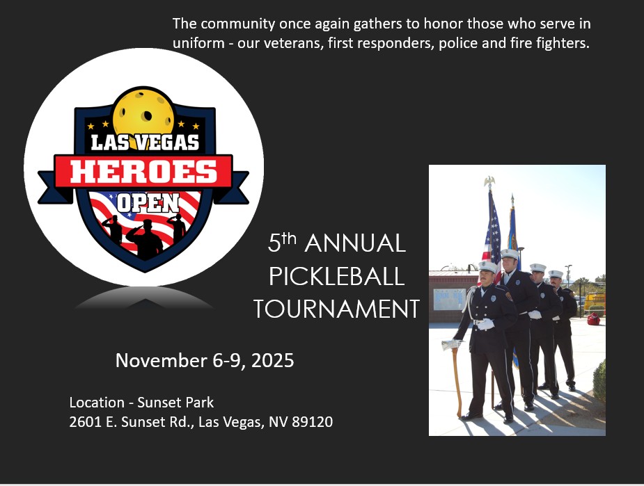 This is a charity tournament. Proceeds go to the Clark County Fire Department's charity "Proud to Rescue", Las Vegas Metro Police "Law Enforcement Assistance Fund" and Southern Nevada Pickleball's veteran initiatives.